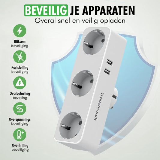 Travelhawk Verdeelstekker 3-voudig – Compacte Reis Stekkerdoos