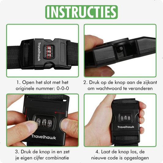 Travelhawk Kofferriem – 180 cm Bagageriem met Cijferslot