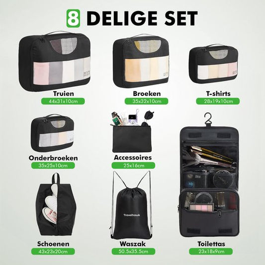 Travelhawk Packing Cubes – 8-Delige Reis Organizer Set voor Koffers