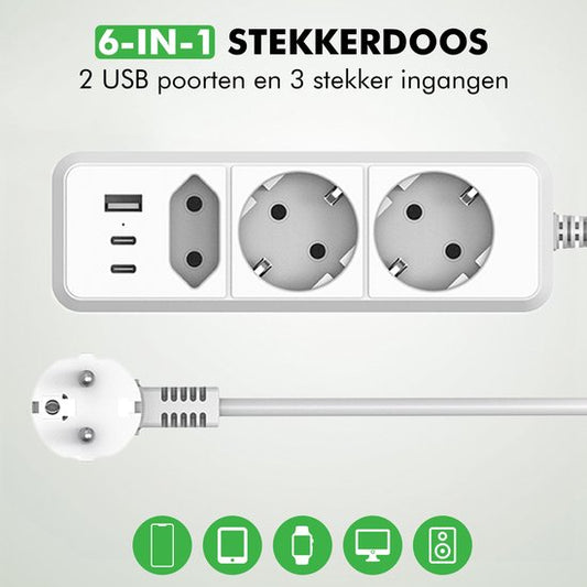 Travelhawk Stekkerdoos 1.5 m – 2× USB-C & 1× USB-A