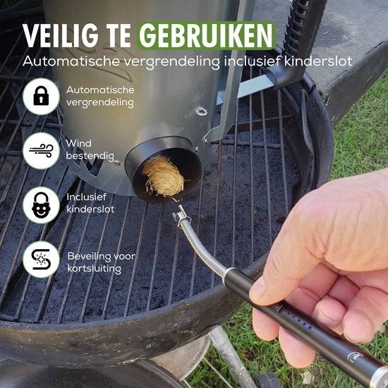 Voorzien van een kinderslot, hoef je alleen de vergrendeling omhoog te schuiven voordat de aansteker werkt. Bovendien schakelt de aansteker zichzelf na 10 seconden automatisch uit, voor extra veiligheid.