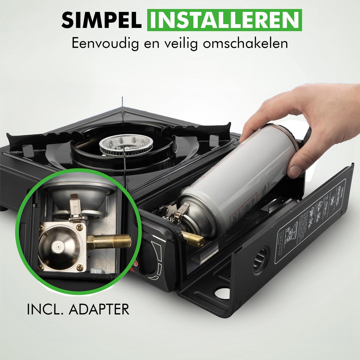 - Brandstof: standaard gascartouches (niet inbegrepen)
