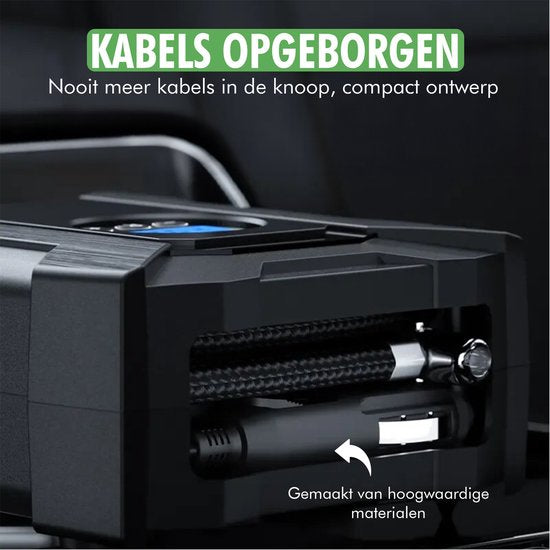 Hij werkt via de 12V-aansluiting in je auto en is direct klaar voor gebruik. De robuuste constructie en het compacte formaat maken hem ideaal voor onderweg, noodgevallen of dagelijks gebruik.
