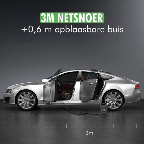 De compressor pompt automatisch tot de ingestelde druk is bereikt. Perfect voor onderweg, vakantie of dagelijks gebruik.