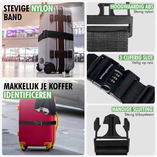 Travelhawk Kofferriem – 180 cm Bagageriem met Cijferslot