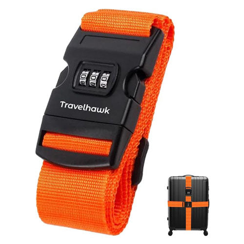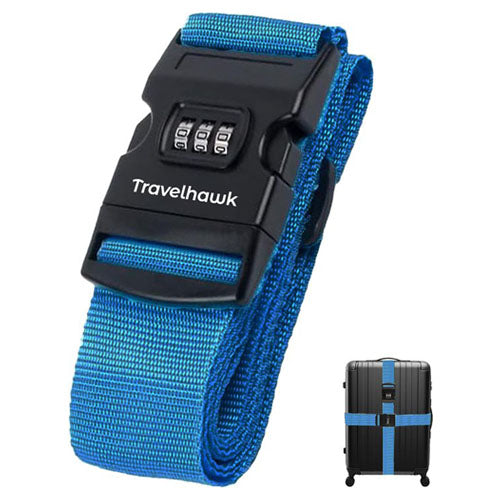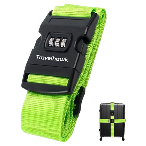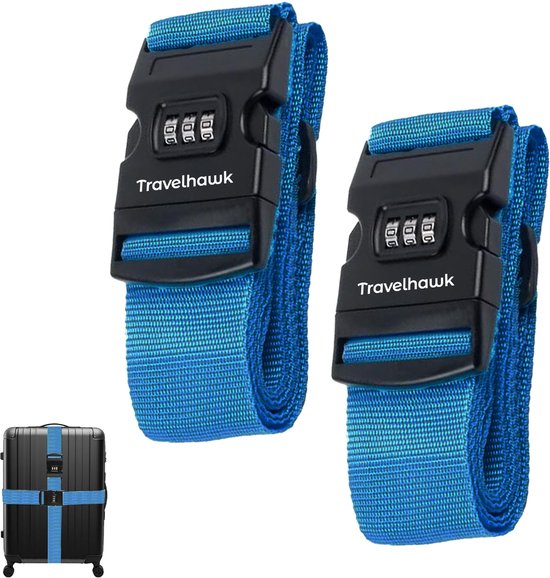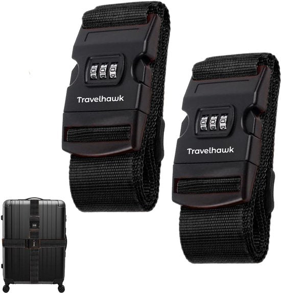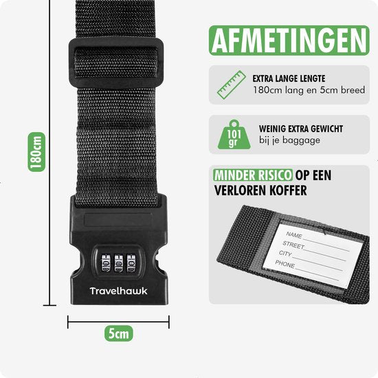 De Travelhawk kofferriem (180 cm) met cijferslot zorgt dat je koffer veilig en herkenbaar blijft. Verstelbaar, duurzaam en ideaal voor op reis.