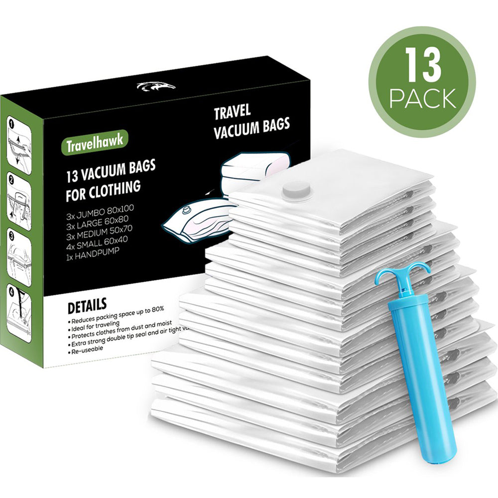 Optimaliseer de opbergruimte van jouw winterdekbed en andere grote textielitems met de Travelhawk Vacuüm Opbergzakken! Deze scheurbestendige vacumeerzakken bieden een handige en efficiënte oplossing om jouw spullen compact en georganiseerd te bewaren.