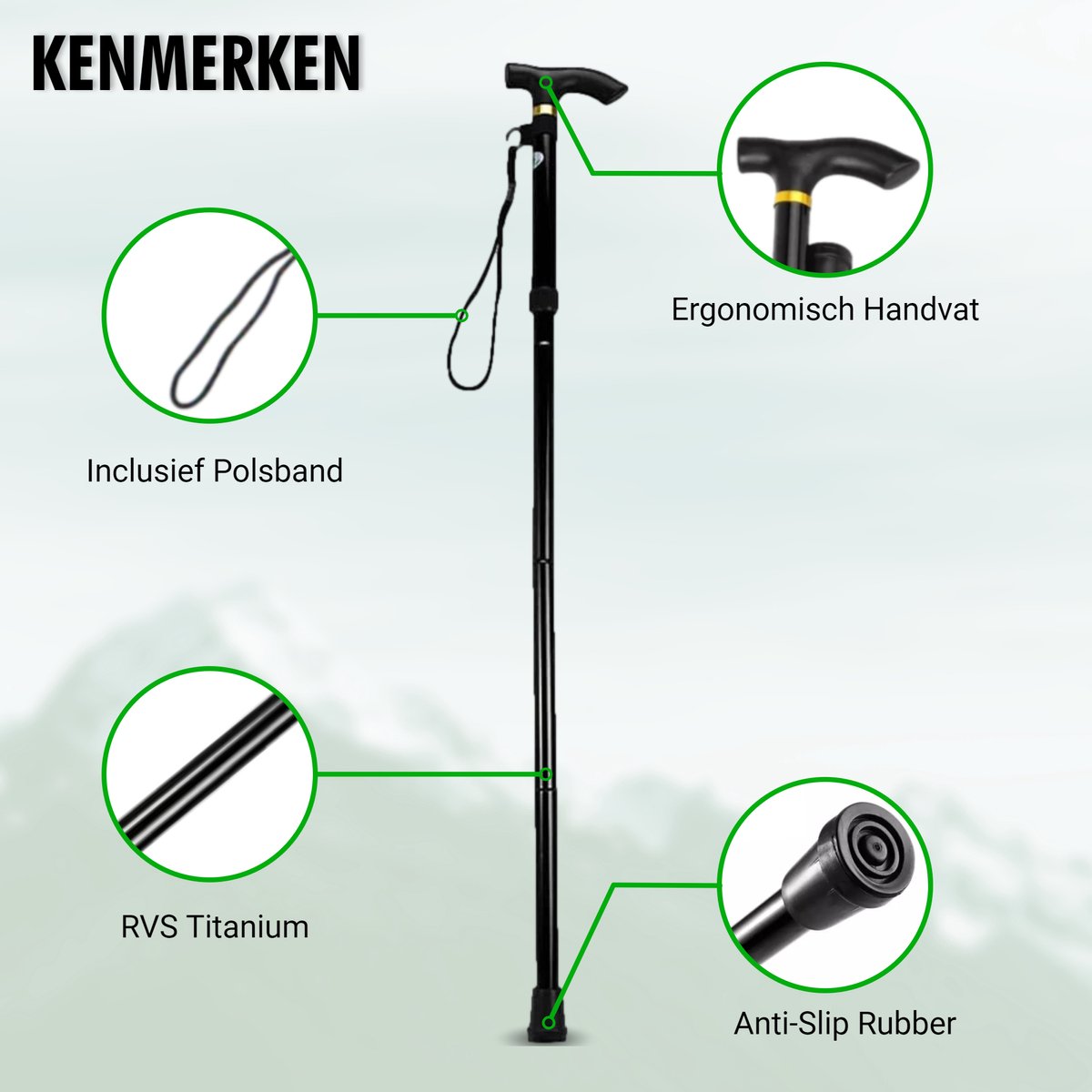 Wandelstok Verstelbaar en Opvouwbaar
